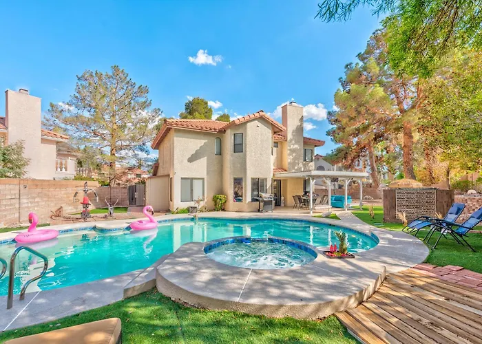 Die Vila Sol Las Vegas bietet die Nähe zu nahe gelegenen Sehenswürdigkeiten wie dem Neighborhood Park (liegt etwa 4 Kilometer von der Unterkunft entfernt). Diese Villa liegt im Stadtviertel Summerlin und verfügt über eine Terrasse mit Blick auf die Berge.